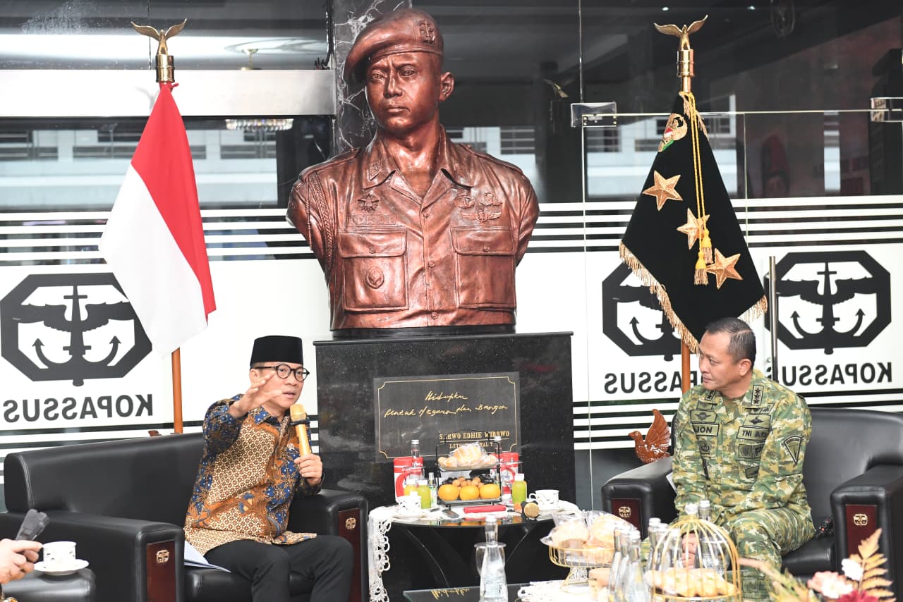 SRAGEN - Menteri Desa dan Pembangunan Daerah Tertinggal (Mendes PDT) Yandri Susanto menggandeng jajaran Komando Pasukan Khusus (Kopassus) untuk dapat menyosialisasikan program 12 Aksi Bangun Des...